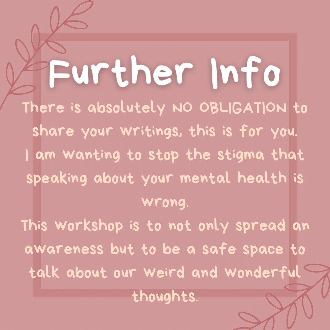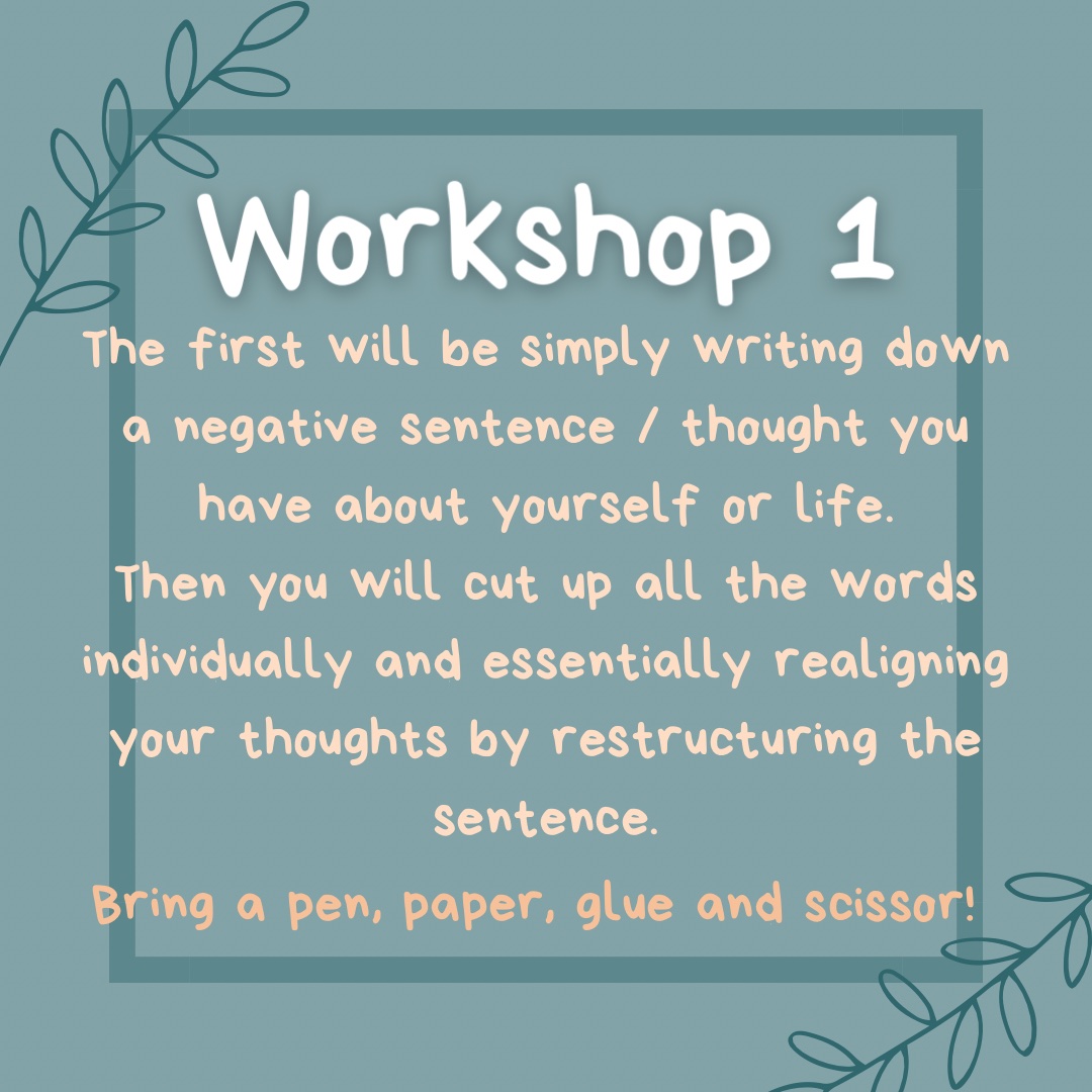 In regards to future workshops I will be taking on board the feedback and kind comments that I received after this one. I am hoping to gather a few more exercises, around 3 to 4, and hold another workshop in the near future all around the theme of realigning thoughts. I believe that with time I can create a series of workshops that can be useful and beneficial to helping those not only with mental health issues, but also those without. We all have negative thoughts, we all have a lack of confidence sometimes and so it is important to create a safe place where we are comfortable to talk about them, and be able to change them into positive thoughts in only a few minutes.