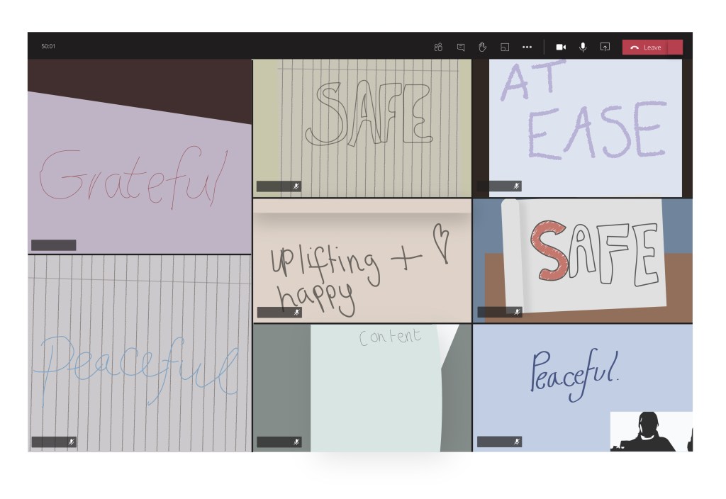 The workshop included the same exercise of rearranging the negative thought/sentence into a more positive one. The addition to this exercise this week, was to think about the space between the negative and positive thoughts/sentences. A place where you find yourself when you’re not necessarily feeling completely negative, but where you struggle to completely pick yourself up and be positive. This space between is somewhere where you can say, “I am okay.”